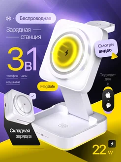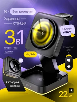 Беспроводная складная зарядка 3 в 1 для iPhone с подсветкой