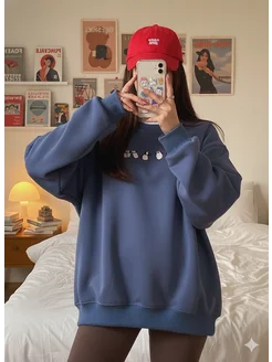 Свитшот оверсайз с принтом пингвины без начеса