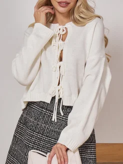 Кардиган вязаный с завязками бантиками укороченный