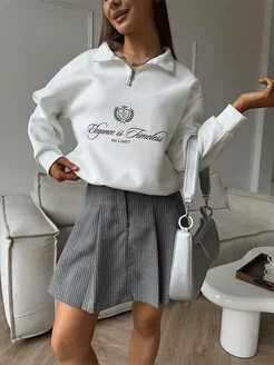 Свитшот полузамок оверсайз с принтом