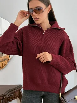 Свитер с горлом на молнии бордовый