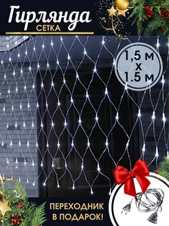 Гирлянда новогодняя светодиодная сетка на окно 1.5х1.5