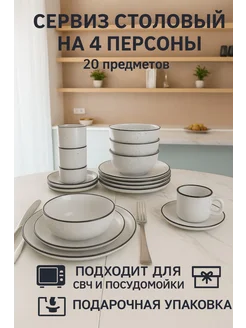Сервиз столовый на 4 персоны обеденный набор тарелок