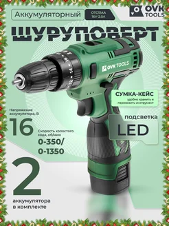Дрель шуруповерт аккумуляторный для дома мощный 16В 2A