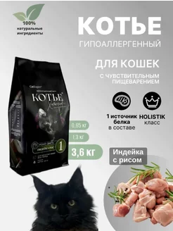 Сухой корм для кошек Котье, гипоаллергенный, индейка, 3,6 кг