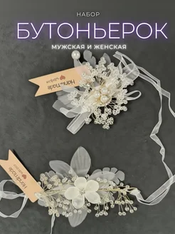 Набор свадебных бутоньерок для жениха и невесты