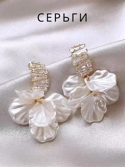 Серьги крупные белые цветы бижутерия свадебные