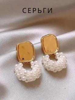 Серьги большие с жемчугом и золотом бижутерия