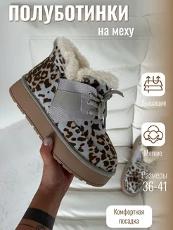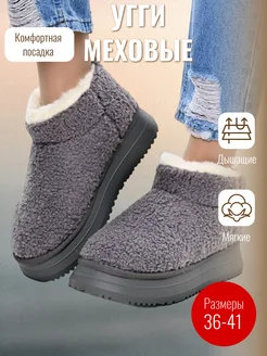 Ботинки угги меховые короткие на платформе