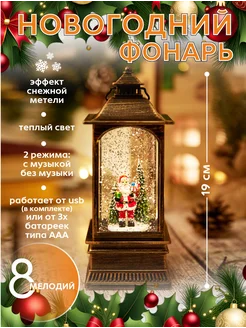 Фонарь новогодний музыкальный со снегом