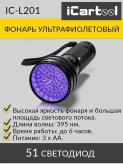 Фонарь ультрафиолетовый, 51 светодиод IC-L201