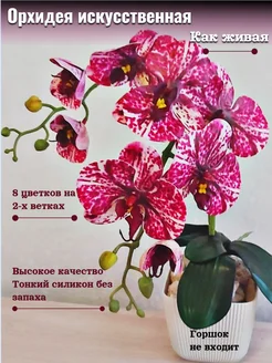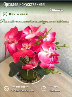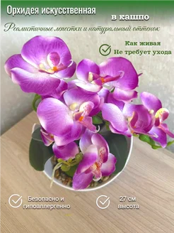 Орхидея искусственная в горшке, цветок в кашпо для декора