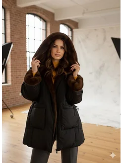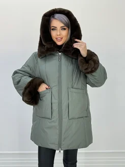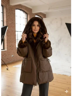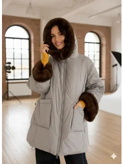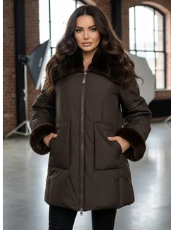 Куртка зимняя оверсайз удлиненная с мехом под норку