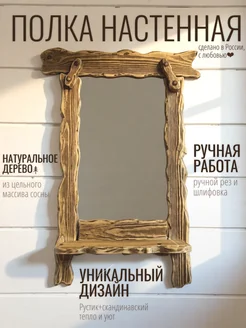 полка настенная с зеркалом из массива дерева ручной работы