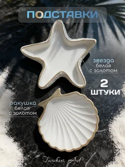 Подставка для украшений звезда и ракушка белые с золотом