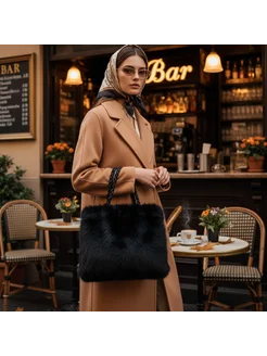Эко-меховая модная сумка шоппер теплая удобная Шик