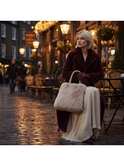 Меховая сумка тоут с пушистым мехом и длинными ручками