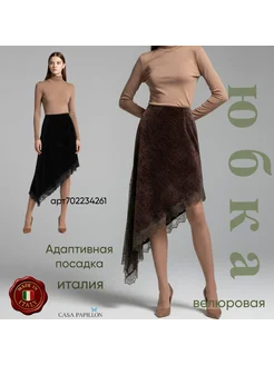 Юбка миди асимметричная велюровая с кружевом Италия