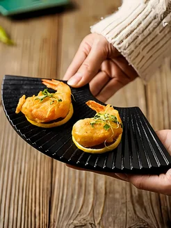 Керамическая тарелка веерной формы, 27 см, чёрная