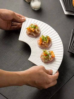 Керамическая тарелка веерной формы, 27 см, белая
