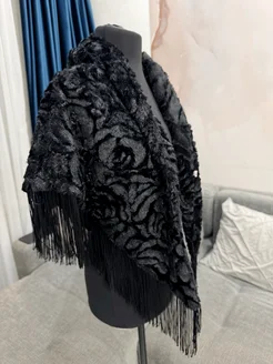 Шарф накидка с бахромой