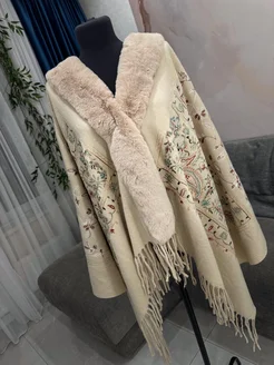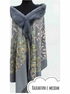 Палантин с мехом и вышивкой