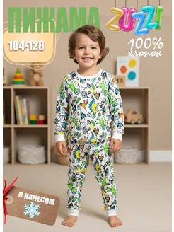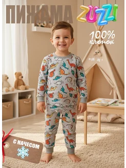 Теплый детский костюм-пижама с динозаврами