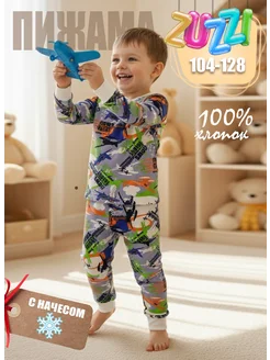 Теплый детский костюм-пижама с самолетами