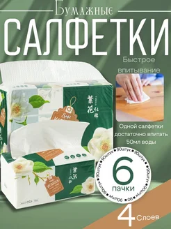 Бумажные салфетки сухие 6уп в мягкой упаковке на стол