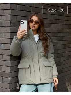 Куртка зимняя оверсайз на кулиске с капюшоном
