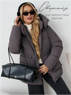 Куртка зимняя оверсайз удлиненная с капюшоном