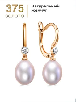 Золотые серьги с жемчугом 375 пробы