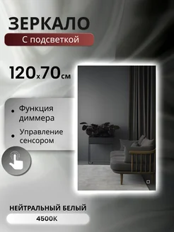 Зеркало настенное с фронтальной подсветкой 6000K 120x60