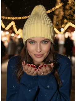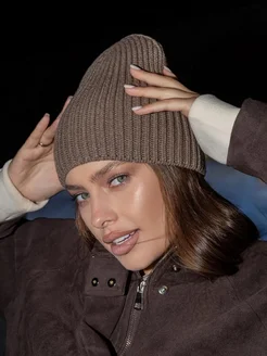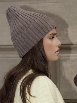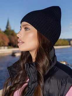 Шапка вязаная бини с отворотом