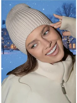 Шапка зимняя вязаная бини с отворотом