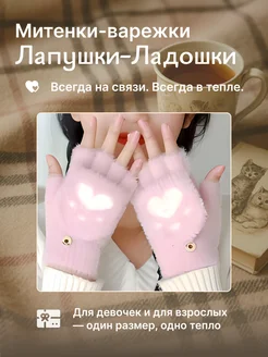 Митенки – варежки зимние пушистые 01