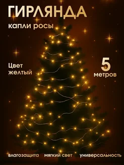 Новогодняя гирлянда Роса 5 м светодиодная от сети желтая