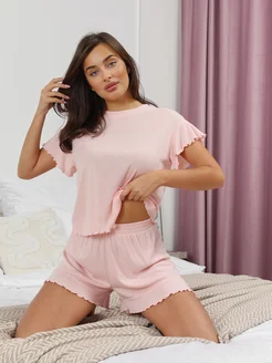 Пижама с шортами и футболкой оверсайз ажурная новогодняя