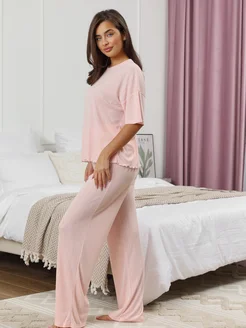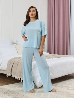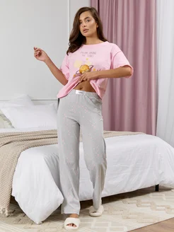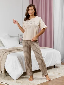 Пижама со штанами и футболкой ажурная хлопок новогодняя