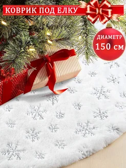 Юбка под елку 120 см. с серебряными пайетками снежинками