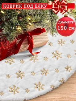 Юбка под елку 150 см. с золотыми пайетками снежинками