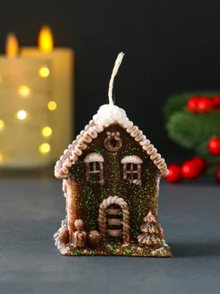 Декоративная новогодняя свеча "Домик с ёлкой" 7 см