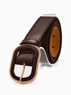 Женский коричневый ремень с золотистой пряжкой 110 см
