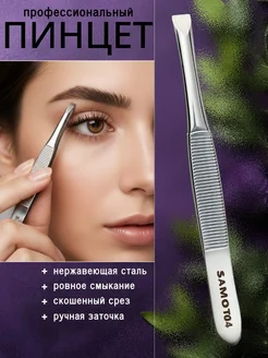 Пинцет для бровей скошенный профессиональный