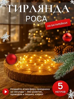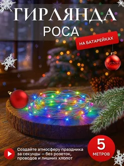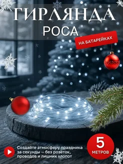 Огоньки на батарейках Гирлянда Роса холодный белый 5 м