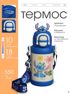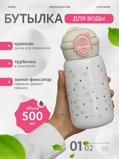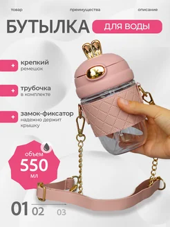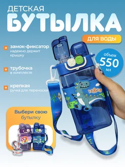 Бутылка для воды детская с трубочкой и ремешком 550 мл