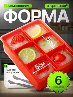 Форма для льда силиконовая с крышкой большая 6 кубов