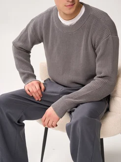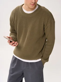 Свитер вязаный из хлопка с круглым горлом