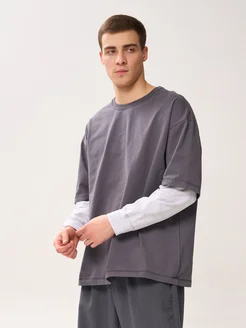 Лонгслив мужской футболка с длинным двойным рукавом кофта