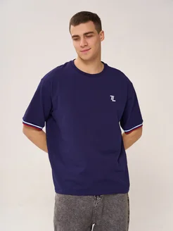 Футболка голубая плотная оверсайз двухцветная